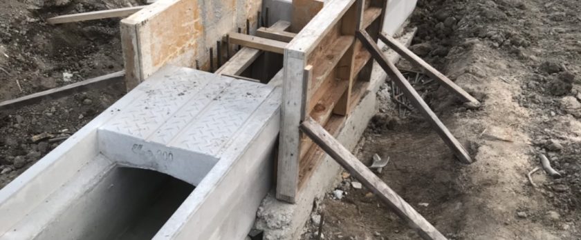 写真は、造成地の既製品側溝のツナギと、L型擁壁です。